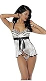 - Charmeuse Babydoll with slightly padded under wired cups, romantic ruffles and a waste-slimming bow.